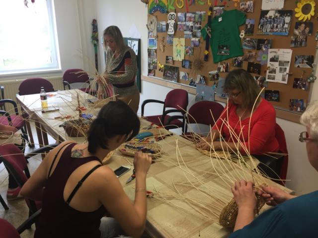 Jak jsem řekl i přítomným dámám, tak mi u toho chybělo něco jako zpěv, což znám z dokumentárních snímků z oblastí, kde se pletením nejrůznějších věcí domorodci i živí. Příjemná atmosféra, tak sem si prošel místností – klubovnou, zkouknul nástěnky, vybavení, výtvory i pracovní materiál. Myslím, že na rukodělné činnosti různého druhu ideální vybavení. Teď si uvědomuji, že jsem se zapomněl zeptat, jak to dělají, když přijde více dětí, protože prostory jsem odhadl tak na 12 míst k sezení. Ale to se určitě ještě optám, protože jsem slíbil, že se zastavím někdy ve středu, kdy mají pravidelnou činnost.