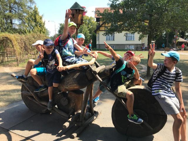 Ve čtvrtek bylo (jako každý den tohoto týdne) opravdu velké horko. My jsme se ale nevzdávali, protože nás čekal výlet do KOVOZOO ve Starém Městě u Uherského Hradiště, abychom vysvobodili Kovo Království. A bylo to náročné, ale také velmi zajímavé. Po příjezdu jsme se vydali na obhlídku celého areálu ve vláčku Steelinka. J Poté jsme se podívali na Kovozoo z výšky, vlezli do letadla, vyzkoušeli vysokozdvižný vozík, dlouhou dobu tloukli do zvonů a trubek, až z toho královnu bolela hlava. Po výborném obědě (řízek s bramborovou kaší a broskvovým kompotem) jsme šli obhlédnout zbytek areálu. Viděli jsme zvířátka vyrobená ze starého kovového odpadu, vylezli jsme na maják Šrotík a obhlédli pirátskou loď. A byl čas návratu. V autobuse jsme pro záchranu Kovo Království zazpívali písničku „Neopouštěj staré známé pro nové“, a protože se nám spát nechtělo, zpívali jsme si naučené písničky celou dobu až domů. J