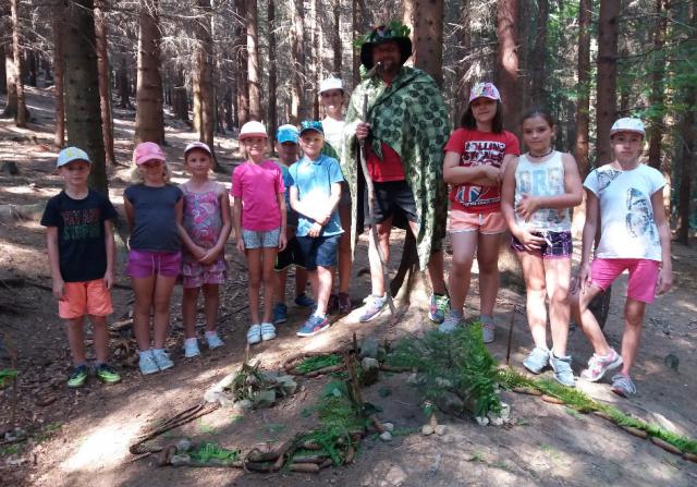 Zažili jsme týden plný pohádek a písniček. Určitě jako nejoblíbenější písničku tábora bych vyhlásila "Barbora píše z tábora", tu jsme zpívali v jednom kuse. Za celý týden jsme stihli zachránit Zemi pohádek a ještě k tomu zneškodnit zlého kouzelníka Zababu, který nás zaklel. Mé nejoblíbenější království bylo rozhodně Krakonošovo, protože děti v lese stavěly nádherné zahrádky, jako návrh pro novou Krakonošovu zahradu. V pátek jsme to zakončili palačinkami a všichni jsme odjeli do svých království. Byl to prima týden.