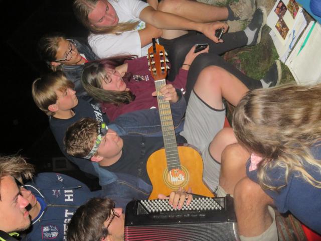Táborák? V plánu v pátek - déšť, přesun na sobotu – opět déšť a neděle? Lepší počasí, tak jsme to dali. Příprava a zápal vedoucích – to vše vedlo k nezapomenutelnému ohni. K tomu vynikající špekáčky, výborné místní pečivo a noc úplňková. Hudba se rozjížděla pomalu, ale Petr s Karlem i Míšou to letos opravdu dali. Jelo se dlouho do noci a užili si to všichni. Rozjezd – hromada českých hitů (později i anglické songy). Ještě teď mi zní v uších songy z poslední série počínající hymnou, pokračujíce lidovkami, moje oblíbená WYWH od Floidů (díky Petře), Nirvana, Limp Bizkit a další. Dost dobrý.