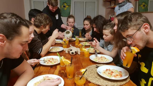 Večerní program byl uspořádán jako soutěž kuchařů. Byli jsme rozděleni do dvou týmů a náš úkol byl prostý, uvařit nejlepší jídlo a zabavit publikum. Souboj vietnamské restaurace proti Italské vyhrála restaurace Italská. Svým ponožkovým divadlem a boloňskými špagetami ohromila porotu i protihráče a získala zasloužené první místo.