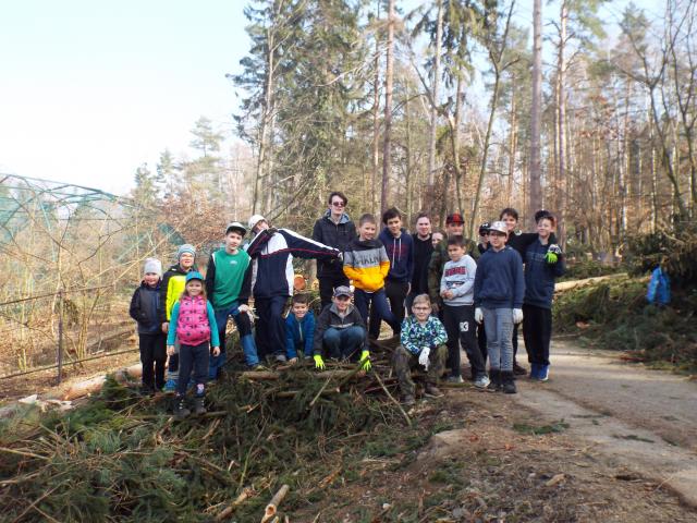 Během sobotního dopoledne jsme si nasadili rukavice, oblékly si pracovní oblečení a vrhli se na vytahování větví ve výběhu kozorožců, který byl zcela zničen a bude třeba tam postavit nový plot. Velké klády odklidily stroje a na nás bylo narovnat na okraj chodníku všechny větve, aby se následně mohly štěpkovat. Práce to byla těžká, ale s vervou jsme se s ní poprali. Páteční večer jsme věnovali noční prohlídce zoologické zahrady a při ní jsme plnili kvíz, který pro nás Želva připravila. Nebylo to nic snadného a jedno zvíře původem z Afriky se nám nikomu odhalit nepovedlo. Během noční procházky jsme pozorovali přesuny 3 druhů žab k vodním plochám.