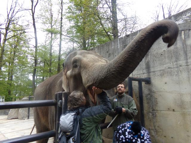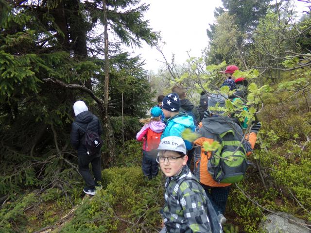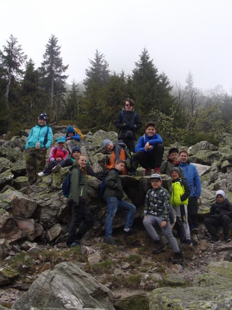 Horší počasí jsme si na tak náročný výstup snad ani v květnu vybrat nemohli. Silně foukalo, padal sníh s vodou a vůbec bylo hrozně nevlídně. Klasická lanovka na Ještěd byla v opravě a tak jsme se na Skalku vydali sedačkovou lanovkou a zbytek jsme museli vyšlapat pěšky. Nějakou dobu jsme se pokoušeli najít i druhou duhovou skrýš, ale prostor kam ukazovala GPS byl silně vykácen, nezůstal kámen na kameni a my jsme v hledání nebyli úspěšní. Cestu dolů jsme statečně v nehostinném počasí šlapali pěšky se zastávkou na turistické chatě, kde jsme se ohřáli a zbaštili kotlík gulášovky. Dolů jsme i přesto, že jsme měli pláštěnky, dorazili zcela promočení. Po obědě byla v plánu návštěva IQLandia, kde jsme trochu proschnuli a zároveň si až do zavíračky hojně užili programu. Mimo duhovou skrýš jsme objevili i další tři poklady v rámci programu Geocaching. Po přesunu na pronajatou chatu, za kterou děkujeme Zoo Liberec jsme se pustili do opékání špekáčků v krbu. Zcela unaveni jsme již před desátou usnuli, že nás v neděli nemohli vedoucí ani probudit. Vzorně jsme chatu uklidili a hurá do zoo. Většina se těšila na bílé tygry a další zvířata. Měli jsme možnost dozvědět se od ošetřovatele vše o indických slonicích, které tu chovají a kdo chtěl, mohl slonici odměnit sloní pochoutkou. Na závěr prohlídky jsme si dali boloňské špagety a pak už jsme pospíchali na vlak. Čekala nás téměř 5 hodin trvající cesta s jedním přestupem v Pardubicích. Výprava se povedla a už pomalu začínáme plánovat, kam vyrazíme příště.