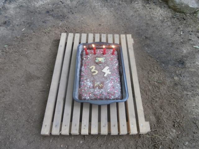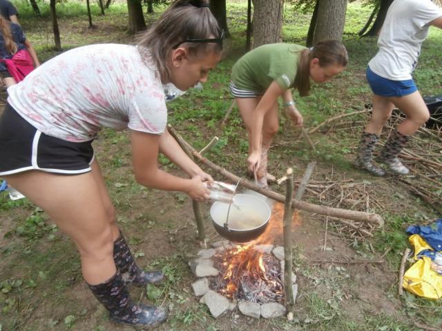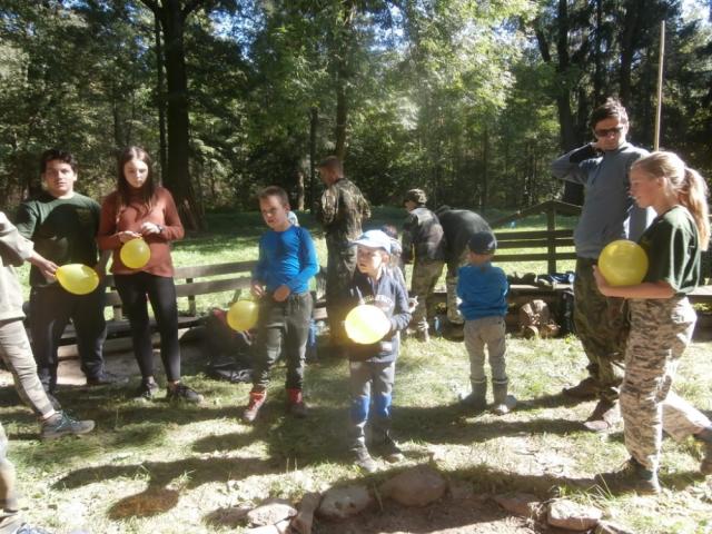 Na tábořišti se toho moc nezměnilo. Prkna v ohništi napovídala, že bude i náš tradiční perníkový dortík. A byl. Napřed jsme samozřejmě zahájili oddílovým pokřikem, seznámili se s nováčky a do misky nasypali obrovskou hromadu kokounů (bonbonů). Slavit budeme sladce! Ještěže to nevidí páni zubaři. Dortík, svíčky, přáníčka a můžeme to rozjet naplno! Je tu tradiční hra, kterou hrajeme jen na Zahajovačce - REZERVACE. Tak tu jsme si opravdu užili. Bylo nás hodně, pytláků málo a tak lov byl velice úspěšný, banka se prohýbala pod tučnými konty, obchod nestačil vykupovat, já se docela nudila, protože na povolenku chtěl lovit málokdo, dokonce i někteří nováčci vyráželi bez ní, aby ušetřili penízky. Do špitálu většinou šli jen ti, které honila mlsná a potřebovali slaďounké ošetření z misky kokounů a ve vězení také žádný nával nebyl. Poprvé za mnoho let jsme měli jen dva lovce, kteří zůstali v mínusu u banky, a hned celá sedmička lovců si nahrabala jmění nad deset tisíc! Vítězná Borůvka si může klidně koupit domeček za rovných 23 OOO (no aspoň zahradní budku). A protože bylo krásně a v lese moc fajn, po sváče jsme se tam zase vrátili a využili nafukovacích balónků k další hře, která byla hlavně o plížení, šikovnosti, taktice, ale také o zákeřnosti našich nejstarších kamarádů, kteří na nás číhali v terénu a snažili se nám naše balónky propíchnout. No, někdy to bylo drama pro obě strany. Čas uběhl rychle, takže ještě nažhavení svou bojovností jsme museli rychle balit. Bigoněk nešetřil chválou na naši adresu, což je vždycky příjemné a nebývá to moc často, a my se vydali zpět na vláček tentokrát Terezským údolím, abychom viděli ten zázrak rozkvetlých luk plných ocúnů, o kterém se mluvilo i v televizi...