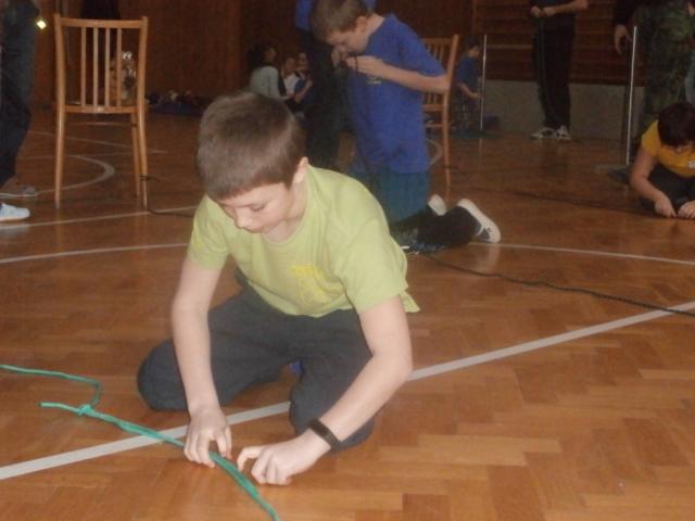 A ten nový jsme zahájili uzlařským zápolením s Duhou Rysi, kteří nám to loni pěkně nandali. Byli jsme rozhodnuti a také pilně trénovali, že letos si ty medaile odvezeme my! Nu, moc nám to nevyšlo, protože přijeli kamarádi z Ostravy, ze Šumperka, ze Zábřehu a také Duha Křišťál z Lutína. A tak byla konkurence veliká. Přesto si odnášíme spoustu osobních rekordů, jedno zlato (Peta) a jeden bronz (Klank), takže spokojenost je veliká. Takže start v novém roce byl pro nás velice úspěšný.