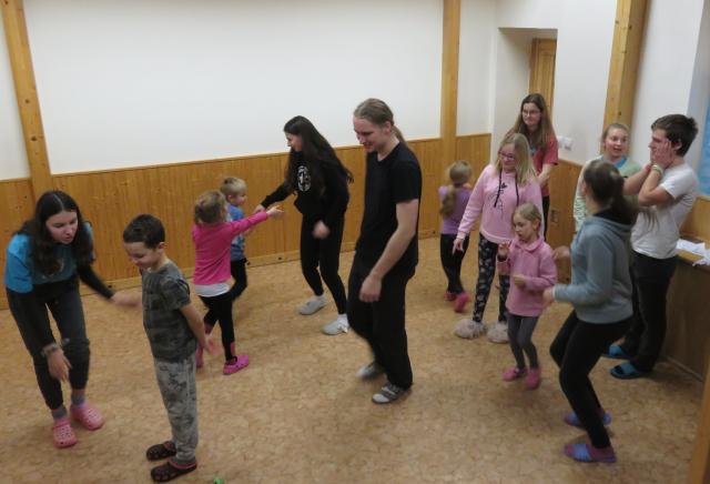 Uvnitř vytopené chaty v jedné místnosti, na chodbách a na schodech probíhaly hrátky pro děti. Dospělí si užívali stolních her, povídání a setkání v jídelně. Úvodní večer byl setkávací a povídací. Druhý byl oslavný - Dlažka měla přesně třicet let od založení – a tak se rozdaly diplomy a ceny, zavzpomínalo se a zahrálo se na kytary – sešlo se zde opravdu sedm kytaristů, kteří si rádi zahráli! Sobotní večer byl klasický závěrečný a pohodový – opět s kytarou a písněmi. Na akci se prostřídala čtyřicítka Dlažkařů od nejmenších až po ty největší. Dík vedoucím pro děti Kokoškovi, Lukášovi, Adélce a Vojtovi. První den byla kuchyně pode mnou a za pomoci ochotných rukou řady účastnic jsme si pochutnali na zeleninové i houbové polévce a králíčkovi či kuřátku. Od druhého odpoledne dík kuchařkám Jitce a Janě se kuchyně blýskla dalšími chody – opravdu skvělá jídla (polévka uzená i hokaidó, těstoviny na tři možnosti, kuřecí prsa, pomazánky a ty skvělé buchty). Celé Zimní rodeo byl zadokumentováno nejen fotkami, ale i básničkami a obrázky sobotní soutěže. Díky všem za fajn víkend a těšíme se na další!