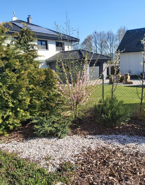 Jedna radostná zpráva. Podívejte se , jak krásně nám kvete naše duhová sakura. Potřebuje sice trochu upravit, ale teď je nádherná. Ten dům za stromem neni náš, ale sousedů. Mají hezký výhled. Jen pro připomenutí, sakury si odvezly dužiny z Duhového mostu v Šumperku 2017. Krásná vzpomínka na báječnou akci.