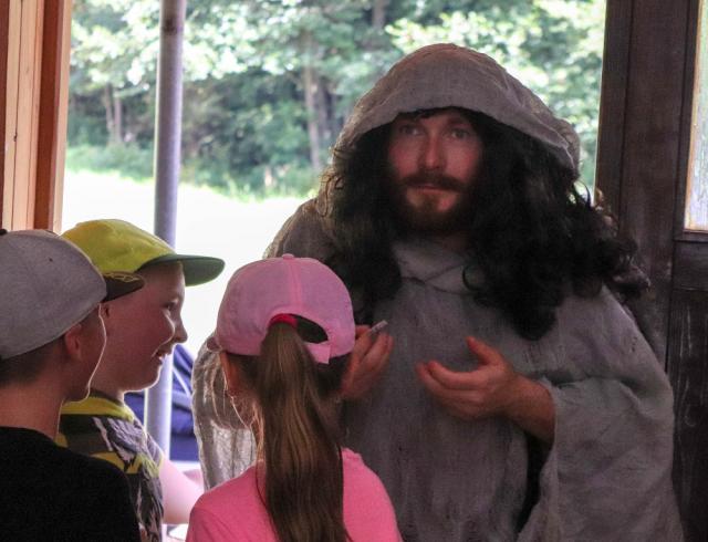 Následujícího rána nás probudila hlídka poplachem. Obři využili toho, že jsme večer slavili, a v nestřeženou chvíli se dostali za hradby. Každý z bohů neprodleně svolal svou družinu a vyrazil s nimi nahoru do kopců, kde měli vyčkat dalších zpráv. Díky zodpovědnosti za své věrné se povedlo i Thora a Týra přemluvit, aby místo boje vyrazili nahoru a kryli nám záda. Sice celou cestu mrmlali něco o tom, jak je to všechno potupné a zbabělé, ale i tak pokračovali dál a dál. V kopcích si pak družiny překontrolovaly, jestli s sebou mají jen ty důležité věci, a když jsme usoudili, že je již bezpečno, vyrazili jsme pomalu nazpět. V Asgardu na nás čekal Baldr, který jako jediný neopustil město, když Obři přišli. Jako jediný z bohů si to mohl dovolit, byl totiž nezranitelný. Jeho matka, bohyně Frigga, neprodleně po tom, co se Baldr narodil, požádala každého tvora, každou rostlinu i každou neživou věc na světě, aby Baldrovi nikdy nic neublížilo, a Baldr tak již od svého útlého dětství neutrpěl nikdy žádné zranění. A tak se nemusel bát ani teď, když do Asgardu vpadli naši nepřátelé. Vyprávěl nám, že Obři vstoupili do Asgardu, celý ho prohledali a nikoho nenašli. Nikoho krom něho, a tak si na něm zkusili vylít svou zlost. Když o něj, jak Baldr popisuje, zlomili asi pátou sekeru, třetí kladivo a sedmý meč, stolů a židlí nepočítaje, usoudili, že to nemá cenu a vydali se někam mimo město do lesů. Týr pak dotáhl nový vynález, který chtěl proti Obrům použít. Nazýval ho katapult a v praxi šlo o stroj, který byl sto metat veliké kusy skal na dlouhou vzdálenost. Okamžitě to otestovali na nejbližším Obrovi a bylo to věru účinné. I tak jsme se tento stroj rozhodli raději vyzkoušet v boji, byť hraném a falešném. Naši hrdinové se na jistou dobu stali obsluhou těchto válečných strojů a snažili se porazit ostatní družiny. Na konci boje pak Týr s Baldrem shledali, že jsou tyto stroje sice účinné, leč poměrně neohrabané, a tak se rozhodli je nechat pouze na hradbách Asgardu pro případ, že bychom se ještě někdy museli bránit útoku zvenčí. Týr si potom z hradeb všiml proužku dýmu nad korunami stromů, což mohlo značit jen jedinou věc. V těch místech se musel nacházet tábor našich nepřátel. Neprodleně jsme vyrazili tím směrem a brzy jsme také narazili na místo, kde se Obři skrývali. Thor chtěl ihned vlétnout do jeho středu a srovnat všechny Obry na jednu velikou, takříkajíc obří, hromadu. Loki s Týrem mu to ale zatrhli a místo toho navrhli, že se do tábora můžeme potichu vkrást a sabotovat jej zevnitř. Ne že by se to Hromovládci nějak zvlášť zamlouvalo, ale přece jenom byli dva na jednoho, a tak co měl dělat. Akorát si tiše něco mumlal pod vousy o tom, jak tady akorát ztrácí svou reputaci a jaká to bude strašlivá nuda, ale i tak se začal plížit po vzoru zbývajících dvou bohů. Uprostřed tábora pak začali Obrům provádět různé nepříjemnosti. Tuhle přeřízli stanovou šňůru, támhle zhasili oheň, jinde rozvázali mamutům křídla a otevřeli ohradu či nařezali násady seker a kopí, případně přiložili jejich kyje na oheň. Co ale Obry naštvalo ze všeho nejvíce, bylo to, když jim Loki nenápadně převrhnul kotle s jídlem. Z toho byly rudí vzteky. Dokonce i Thor si tenhle způsob „boje“ začal užívat. K hlavnímu vedení tábora jsme se ale bohužel skrze stráže nebyli sto dostat. Dlouho jsme si lámali hlavu, jak uškodit přímo jim, neboť veškeré naše snahy o poškození obřího tábora byly dříve či později napraveny právě díky vůdcům této armády. Je nutné připustit, že opravdu uměli dobře organizovat své podřízené. Nakonec nás díky Bragimu napadla možnost, jak se dostat přímo k nim. V okolí Asgardu se vždy pohybovalo dost skaldů, kteří vždy čekali na svou příležitost, aby se mohli zviditelnit a ukázat světu, co v nich je. Není skalda, který by netoužil po možnosti složit báseň či ódu na hrdinské činy či skutky. Ostatně má maličkost je toho důkazem. No a s dobrým předmětem a příběhem se dostanete kamkoliv si jen budete přát. Takže se jednotlivé družiny, a bohové taky, pustili do umělecké tvorby, která nás měla dostat blíže vedení obří armády, abychom se ho mohli následně zbavit. Na přípravy nebylo tolik času, jak bychom si představovali, ale dělali jsme, co bylo v našich silách, a naše úsilí bylo také zúročeno. Večer, když se začal den chýlit ke svému konci, se nám podařilo dostat se do hlavního obřího stanu. Jednotlivé družiny zde předvedly to, co během dne nacvičovaly, a že to byly opravdu velké divadelní kusy. V jednom případě zde naši hrdinové měli dokonce medvěda a lva! Viděli jsme představení zobrazující sázku mezi Lokim a obyčejným člověkem nebo rap-battle mezi Thorem a Lokim. A i naši božští patroni přispěli svou troškou do mlýna, když sehráli dnes již klasickou scénku „Kdybych nebyl Vikingem, byl bych…“ a jednu z mnoha variací na téma „Už?“. Část Obrů se nakonec také přidala a ukázala něco ze svého uměleckého repertoáru a okem umělce musím uznat, že to nebylo zas až tak špatné. Zbytek Obrů pak byl těmito představeními tak zaujat, že si nikdo ani nepovšimnul Thora s Lokim, kteří se nenápadně propletli táborem až k hlavnímu vedení, které potom velmi razantně a nesmlouvavě přesvědčili o tom, že pro jejich zdraví opravdu není dobré se nadále zdržovat v okolí Asgardu. Když jsme pak tábor Obrů opouštěli, slyšeli jsme jen velmi razantní hlasy a výkřiky, které burcovaly tábor k urychlenému zabalení a přesunutí někam na bezpečnější místo.