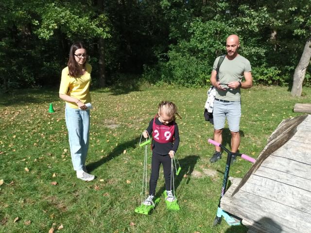 Od střelby z luku, před jízdu slalomem na odrážedle, přes přechod po laně. Nechybělo ani oblíbené skákání v pytlích, kde si zaskákali i rodiče. Těsně před cílovou rovinkou byl připraven netradiční sportovní trojboj pro rodiče, kdy museli s plným batohem skočit z místa co nejdál a následně si po schodech vyběhnout pro odměnu. Rodiče za splnění úkolu získali plastový kelímek s našim logem a pro děti byly připraveny drobné odměny od sponzorů a zdravá tyčinka od firmy Bombus Energy. I když akci předčasně ukončil déšť, ze spokojených tváří účastníků soudíme, že se akce vydařila.