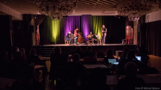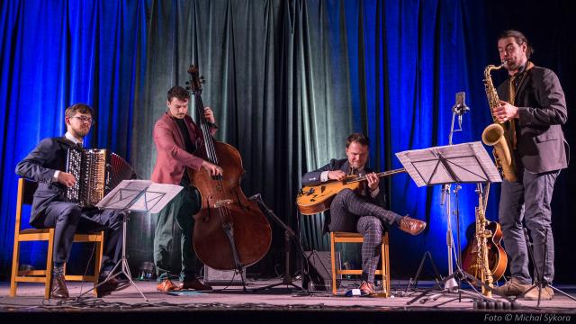 Máme za sebou první koncert 22. ročníku Hudboslovení. Vynikající! Parádní! Tak zněly komentáře nadšených diváků ke koncertu kapely Horký vývar (Hot Brew). Světové hity i malé pamlsky mixu jazzu a swingu servíroval mezinárodní kvartet vedený naším Dlažkařem „Karlem“ Vojtou Drnkem.